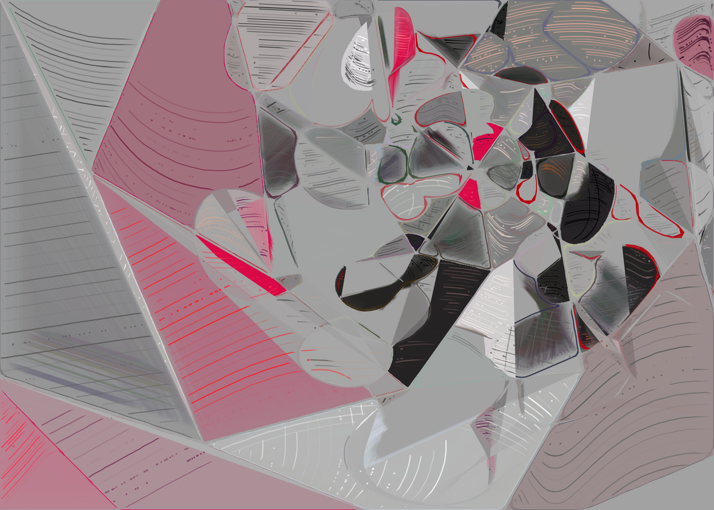 The rendering of **Running Moon** is inspired by stained glass and watercolor. It captures the sharpness of the glass and the softness of light using abstract forms. As organic shapes gradually expand to fill the space, brush-pen-like stripes solder these pieces together to form intricate compositions.