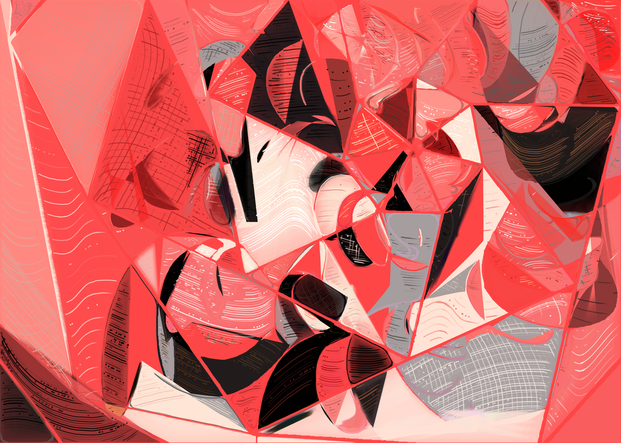 The rendering of **Running Moon** is inspired by stained glass and watercolor. It captures the sharpness of the glass and the softness of light using abstract forms. As organic shapes gradually expand to fill the space, brush-pen-like stripes solder these pieces together to form intricate compositions.