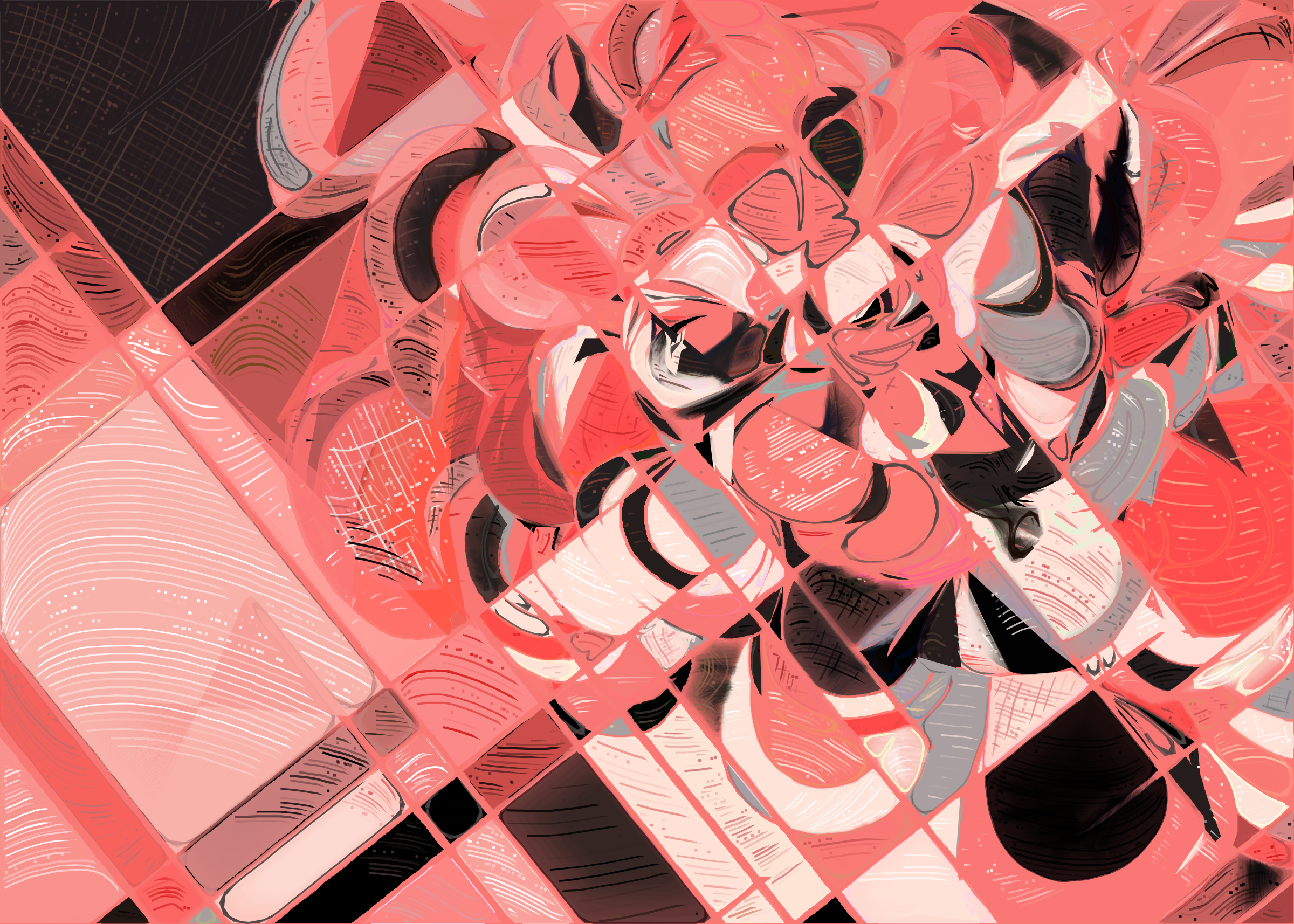 The rendering of **Running Moon** is inspired by stained glass and watercolor. It captures the sharpness of the glass and the softness of light using abstract forms. As organic shapes gradually expand to fill the space, brush-pen-like stripes solder these pieces together to form intricate compositions.