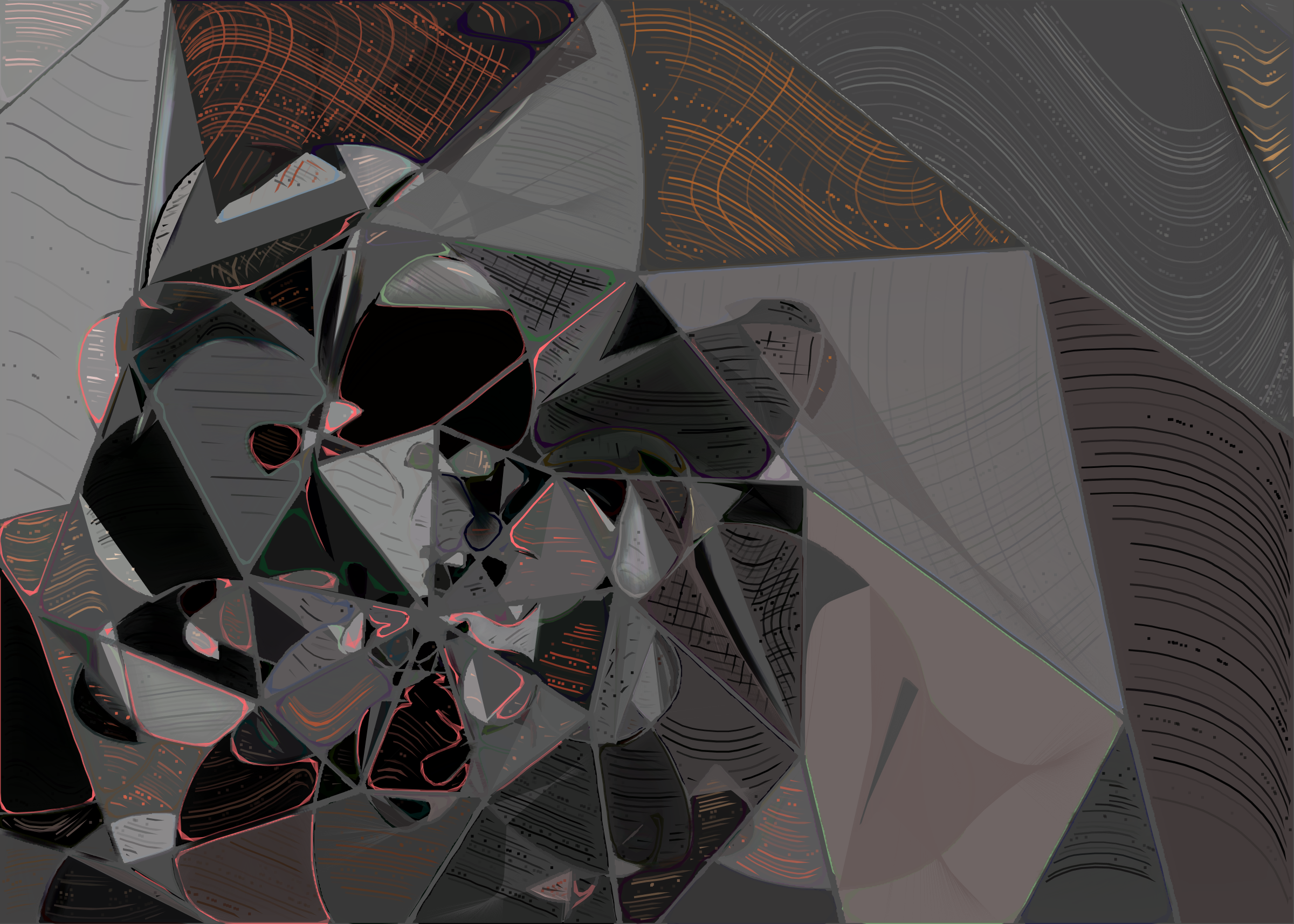The rendering of **Running Moon** is inspired by stained glass and watercolor. It captures the sharpness of the glass and the softness of light using abstract forms. As organic shapes gradually expand to fill the space, brush-pen-like stripes solder these pieces together to form intricate compositions.