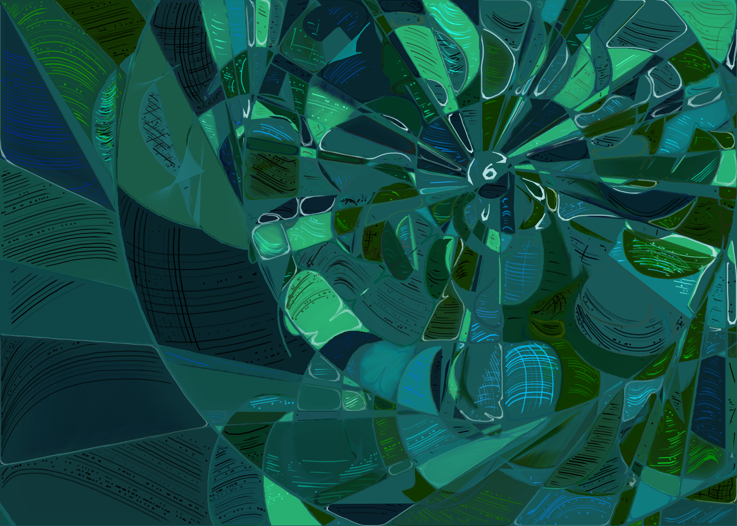 The rendering of **Running Moon** is inspired by stained glass and watercolor. It captures the sharpness of the glass and the softness of light using abstract forms. As organic shapes gradually expand to fill the space, brush-pen-like stripes solder these pieces together to form intricate compositions.