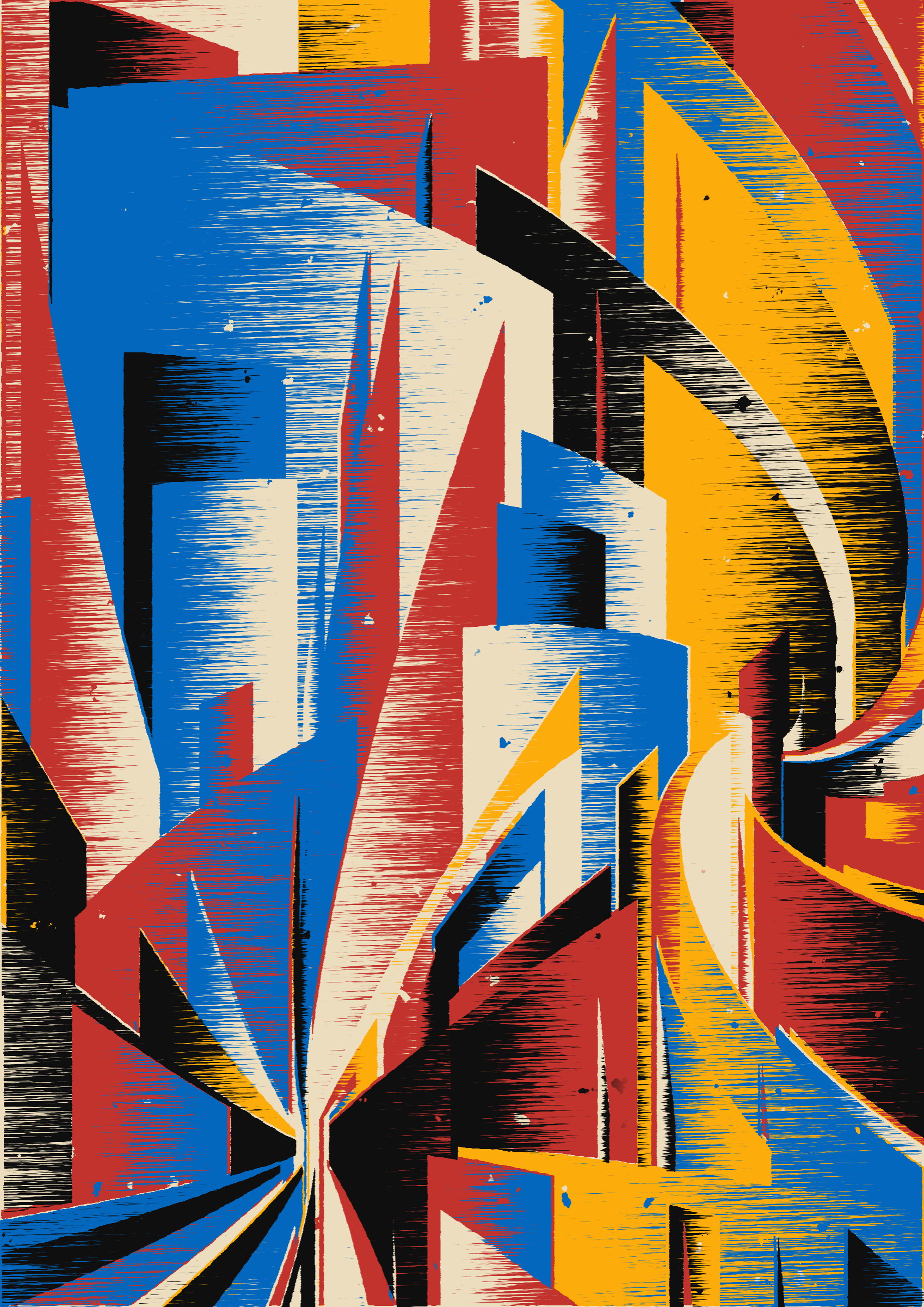 The "Screens" series is a celebration of modern art. It is inspired by the aesthetics inherent in screen printing along with the compositions and colors of both Bauhaus, Constructivism, and pulp fiction sci-fi covers.