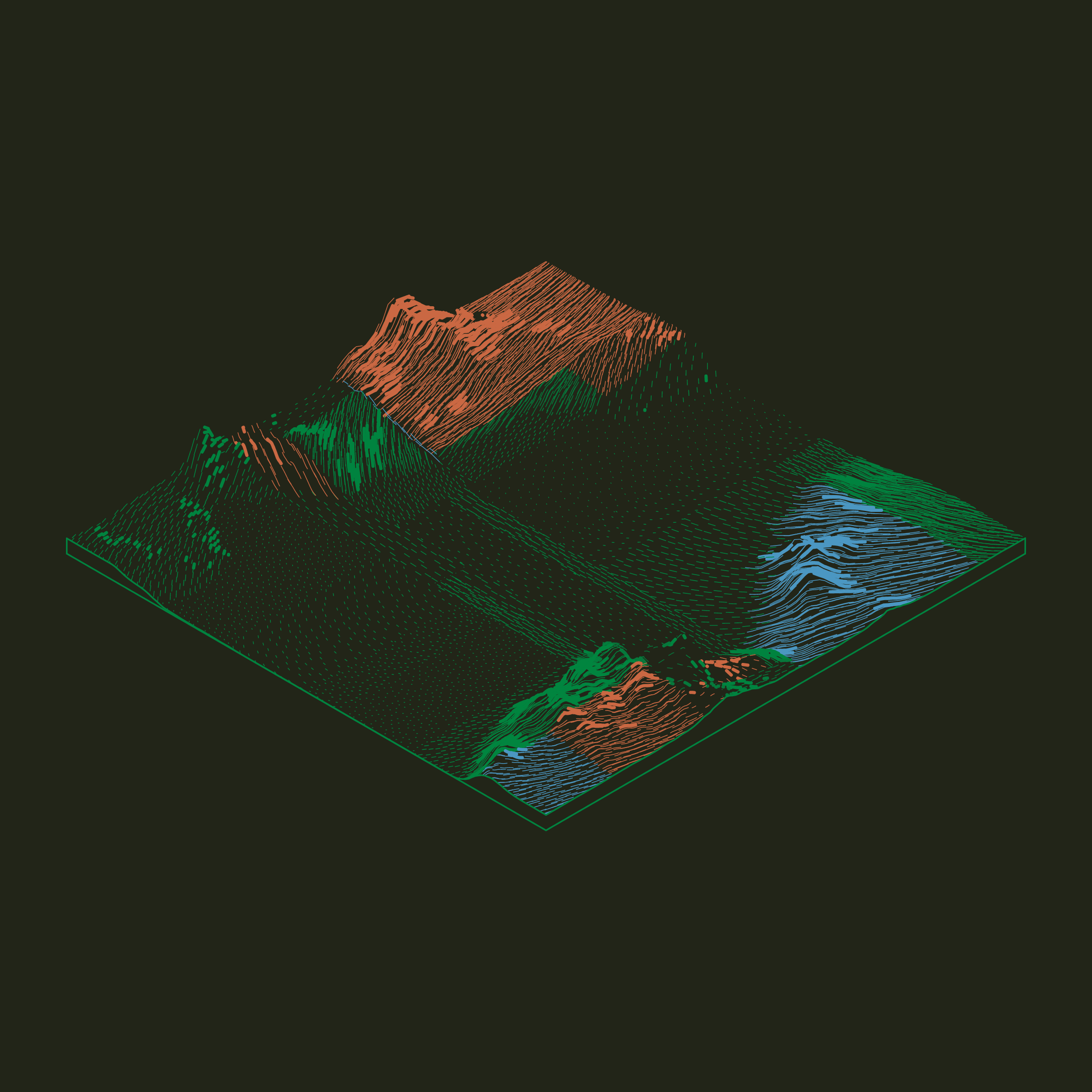 A generative algorithm that draws the impression of a landscape from a multitude of possibilities. The unique seed from each token drives the parametric assortment of lines, colors, and forms into a constructed composition.