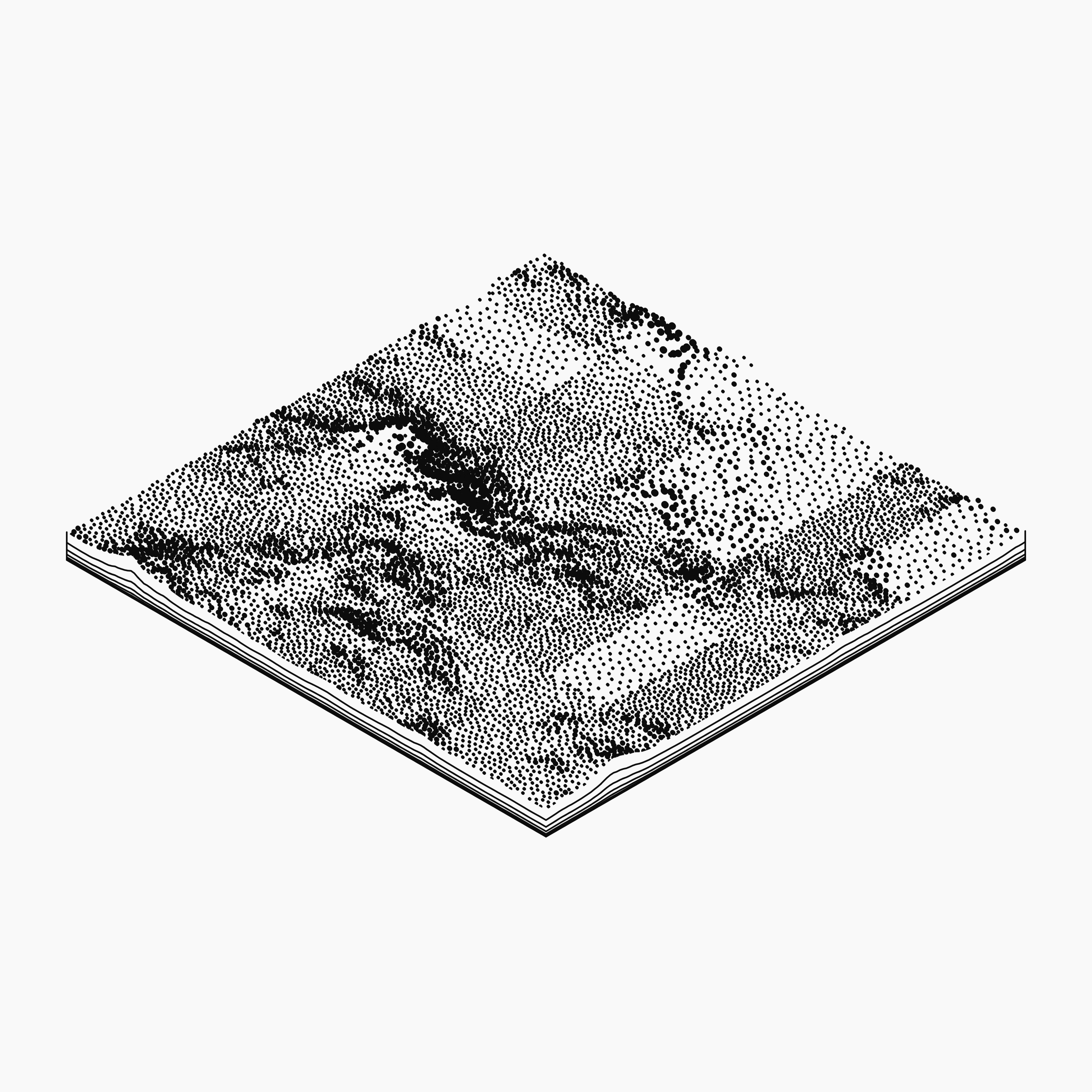 A generative algorithm that draws the impression of a landscape from a multitude of possibilities. The unique seed from each token drives the parametric assortment of lines, colors, and forms into a constructed composition.