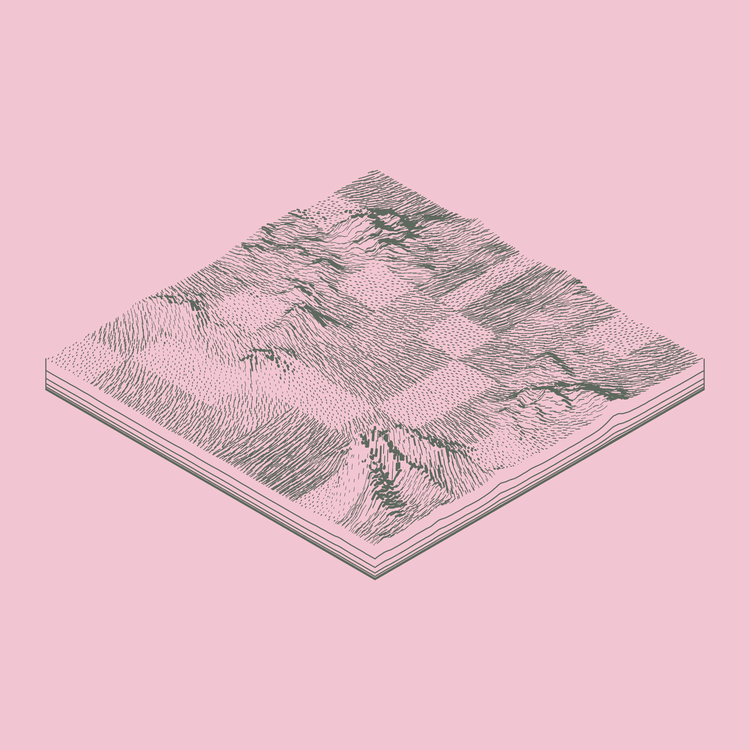 A generative algorithm that draws the impression of a landscape from a multitude of possibilities. The unique seed from each token drives the parametric assortment of lines, colors, and forms into a constructed composition.