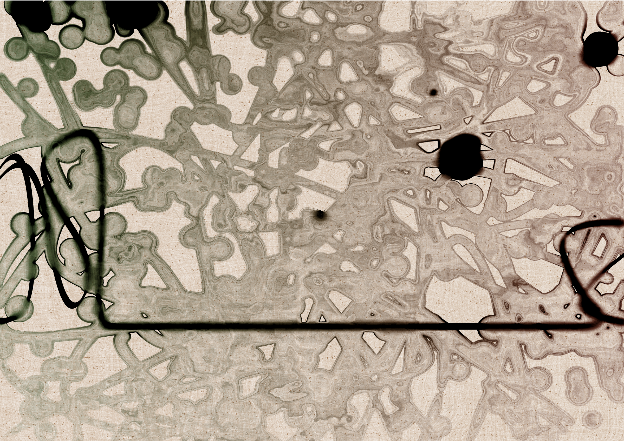 Digital liquid is spilled upon it and takes the ink in directions that are unexpected, uncontrolled, and tell a much more interesting story than the one the line intended.... and often more beautiful.