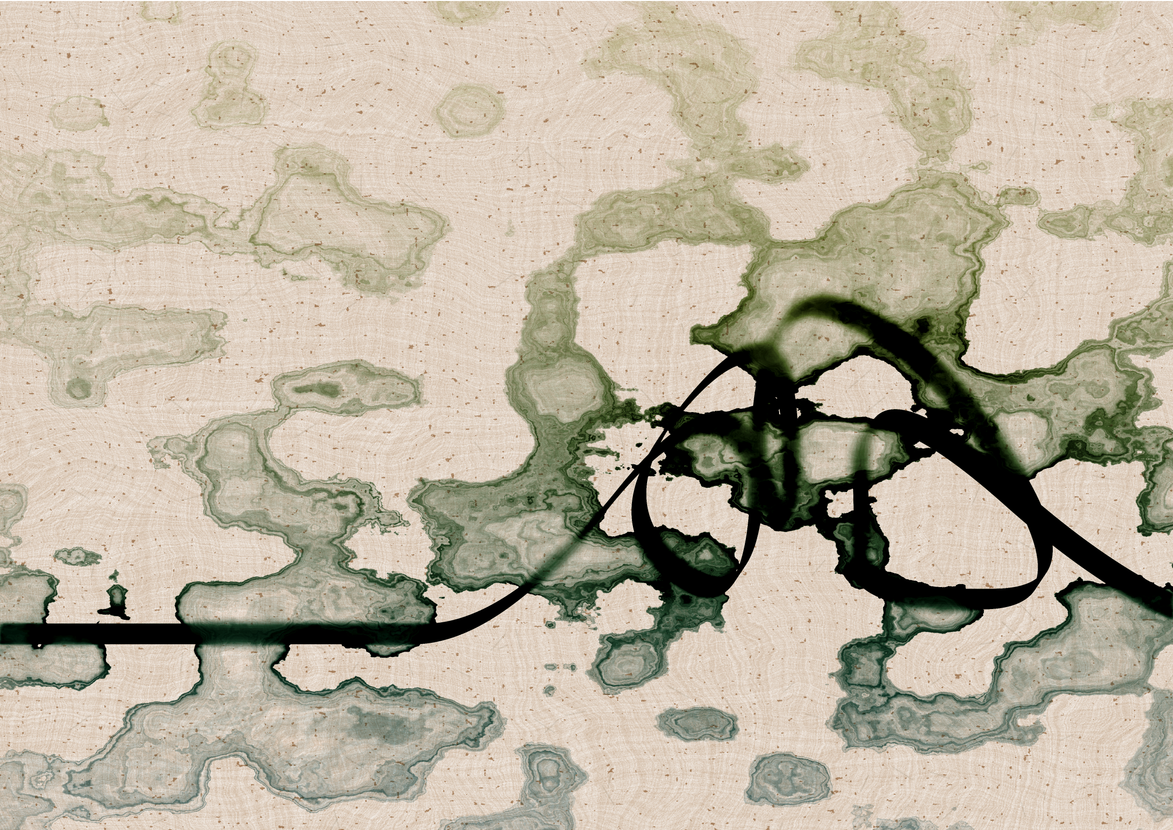 Digital liquid is spilled upon it and takes the ink in directions that are unexpected, uncontrolled, and tell a much more interesting story than the one the line intended.... and often more beautiful.