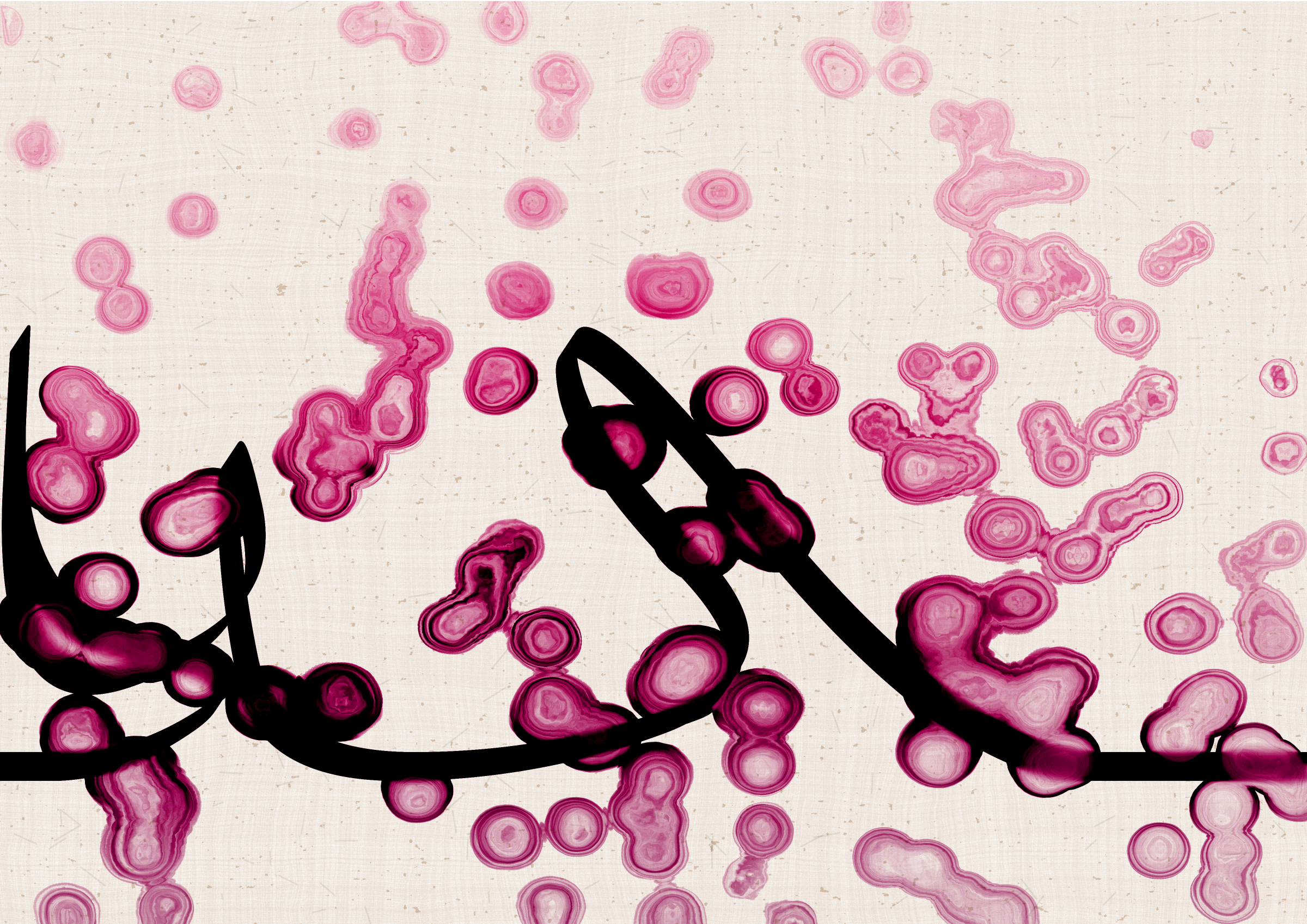 Digital liquid is spilled upon it and takes the ink in directions that are unexpected, uncontrolled, and tell a much more interesting story than the one the line intended.... and often more beautiful.