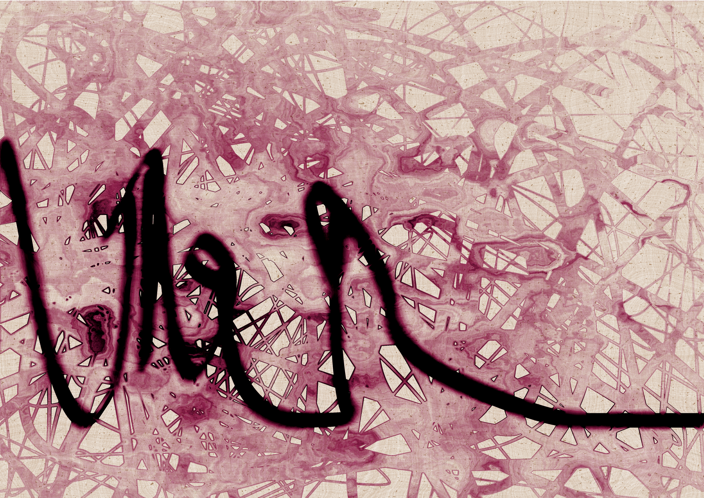 Digital liquid is spilled upon it and takes the ink in directions that are unexpected, uncontrolled, and tell a much more interesting story than the one the line intended.... and often more beautiful.
