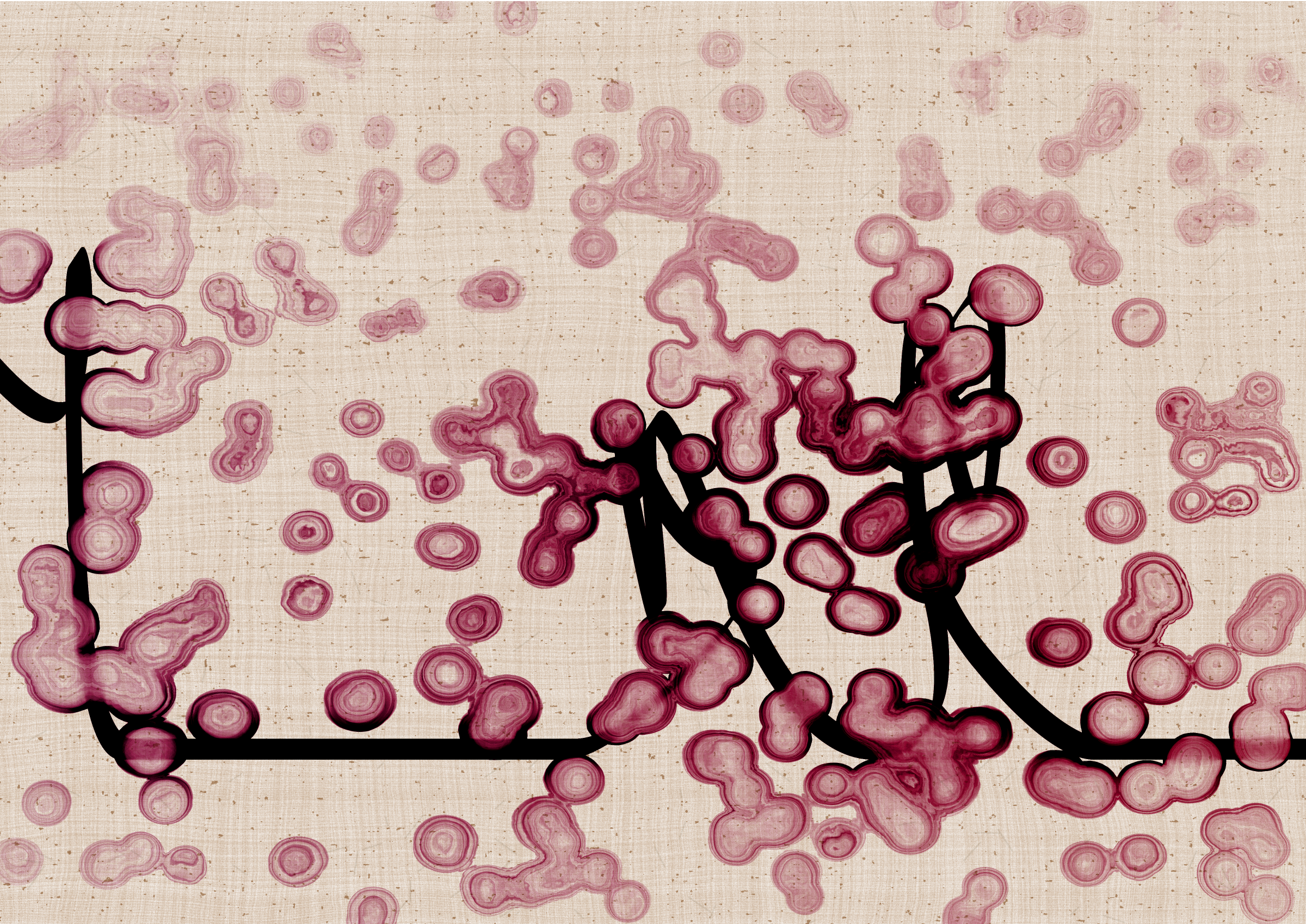 Digital liquid is spilled upon it and takes the ink in directions that are unexpected, uncontrolled, and tell a much more interesting story than the one the line intended.... and often more beautiful.