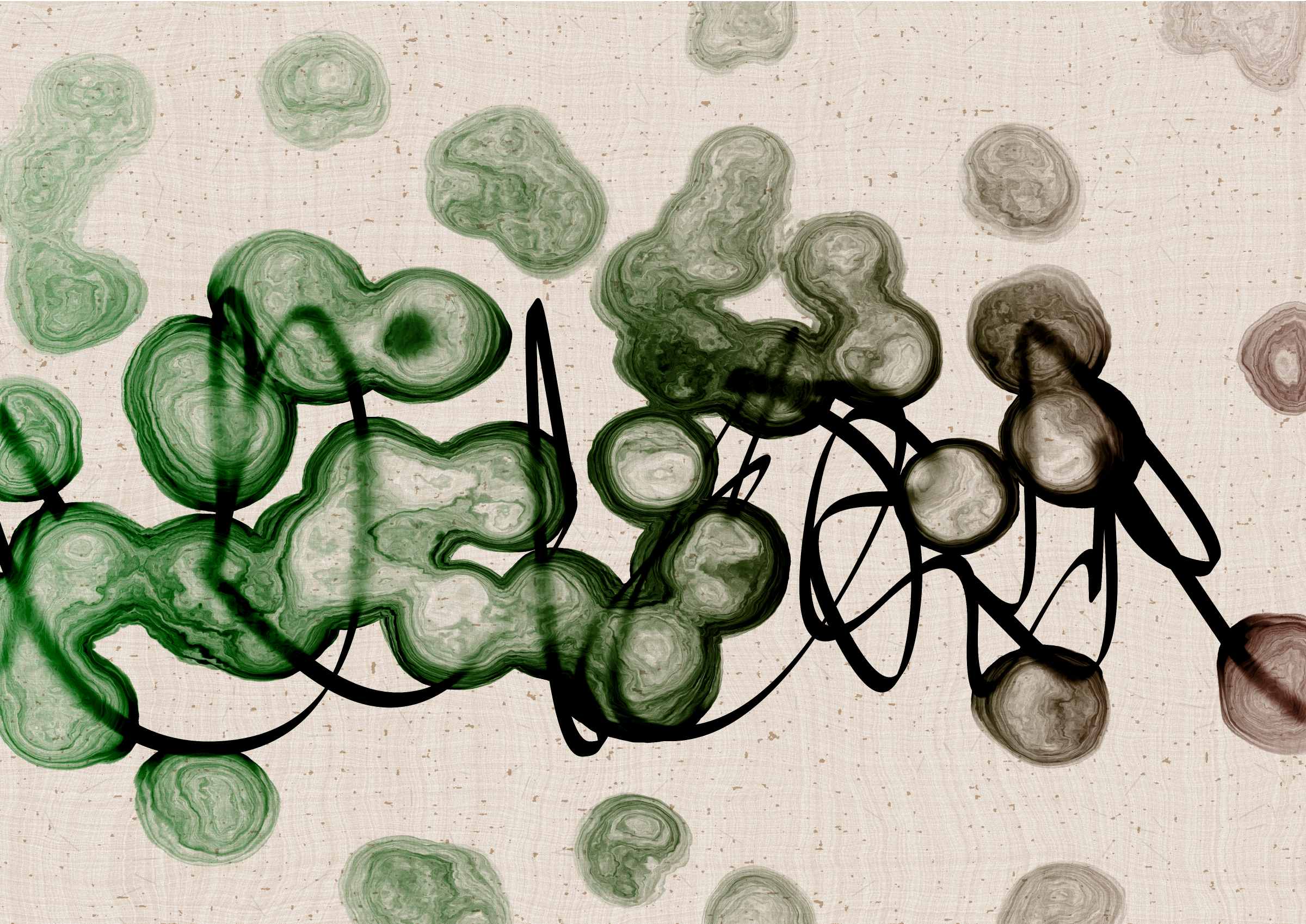 Digital liquid is spilled upon it and takes the ink in directions that are unexpected, uncontrolled, and tell a much more interesting story than the one the line intended.... and often more beautiful.