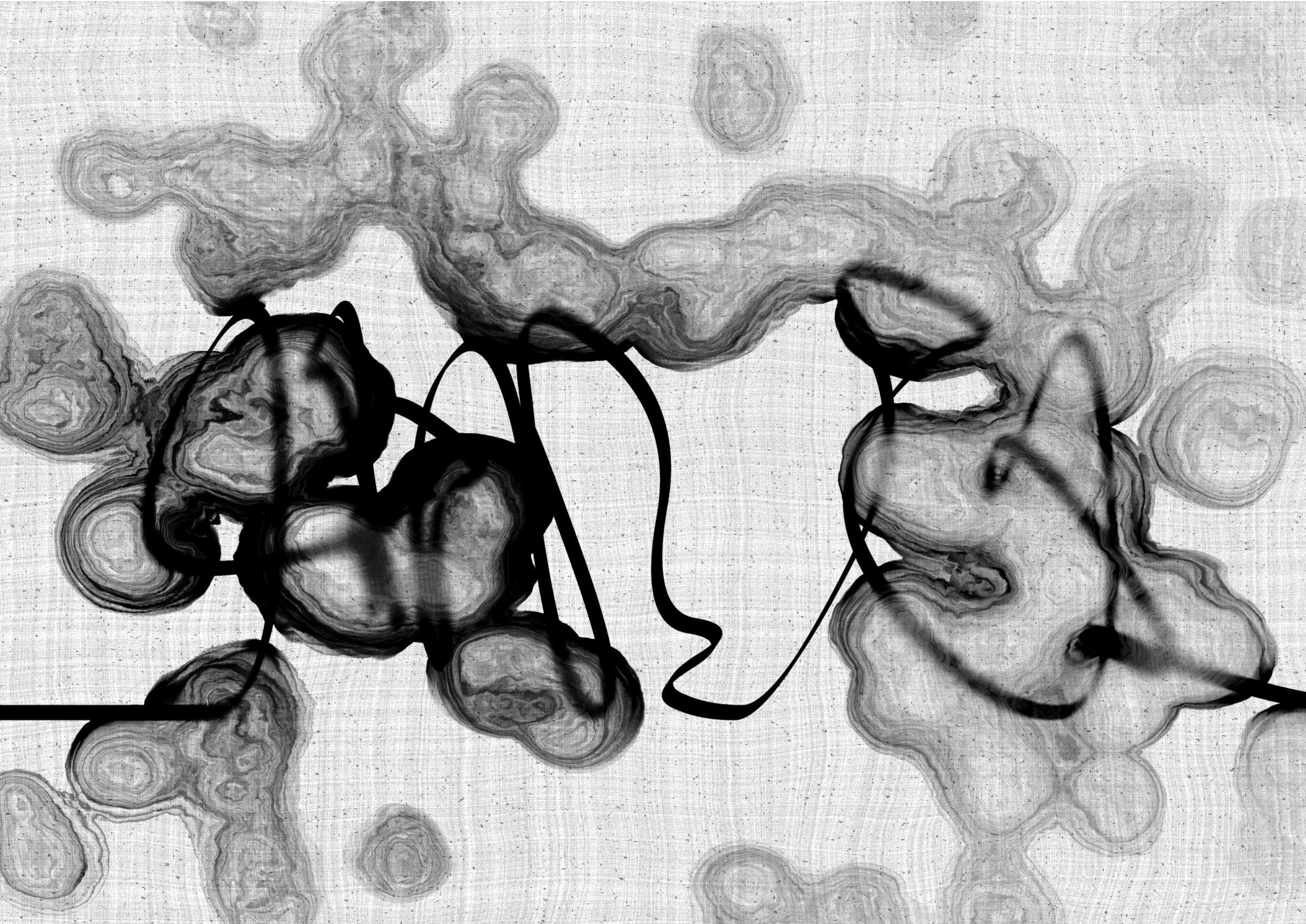 Digital liquid is spilled upon it and takes the ink in directions that are unexpected, uncontrolled, and tell a much more interesting story than the one the line intended.... and often more beautiful.