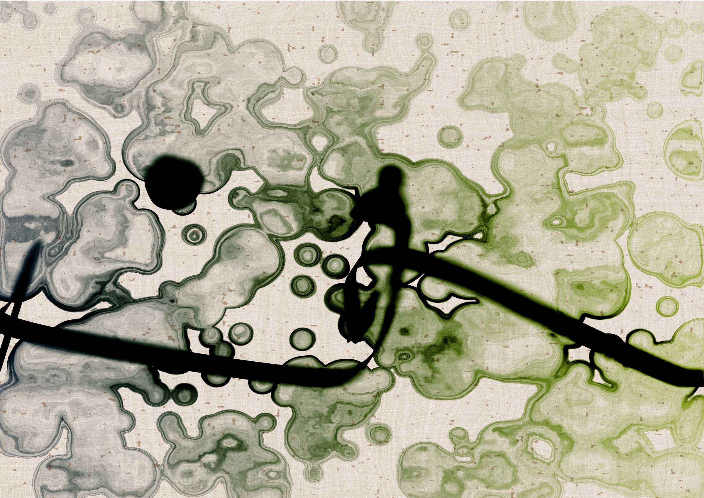 Digital liquid is spilled upon it and takes the ink in directions that are unexpected, uncontrolled, and tell a much more interesting story than the one the line intended.... and often more beautiful.