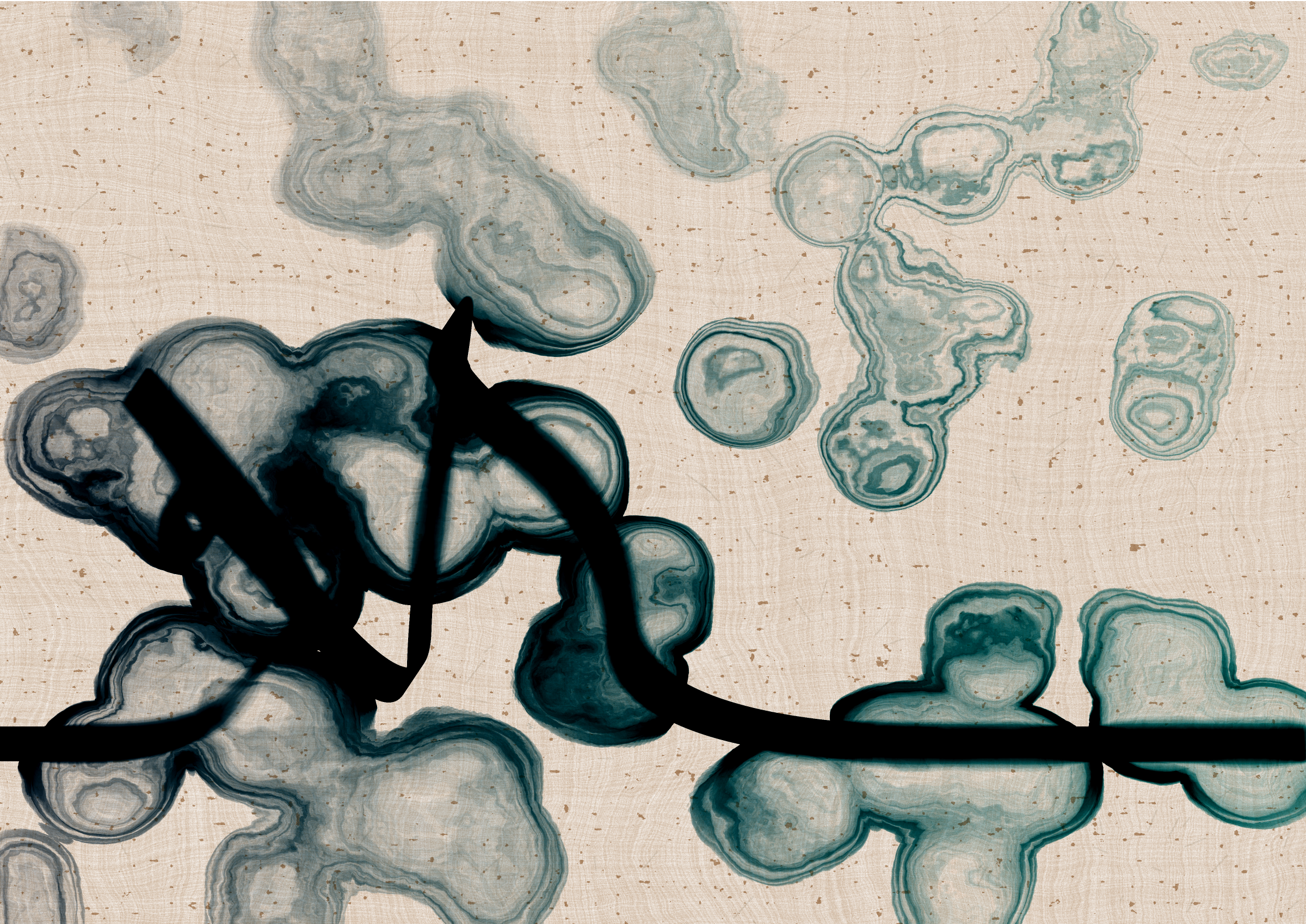 Digital liquid is spilled upon it and takes the ink in directions that are unexpected, uncontrolled, and tell a much more interesting story than the one the line intended.... and often more beautiful.