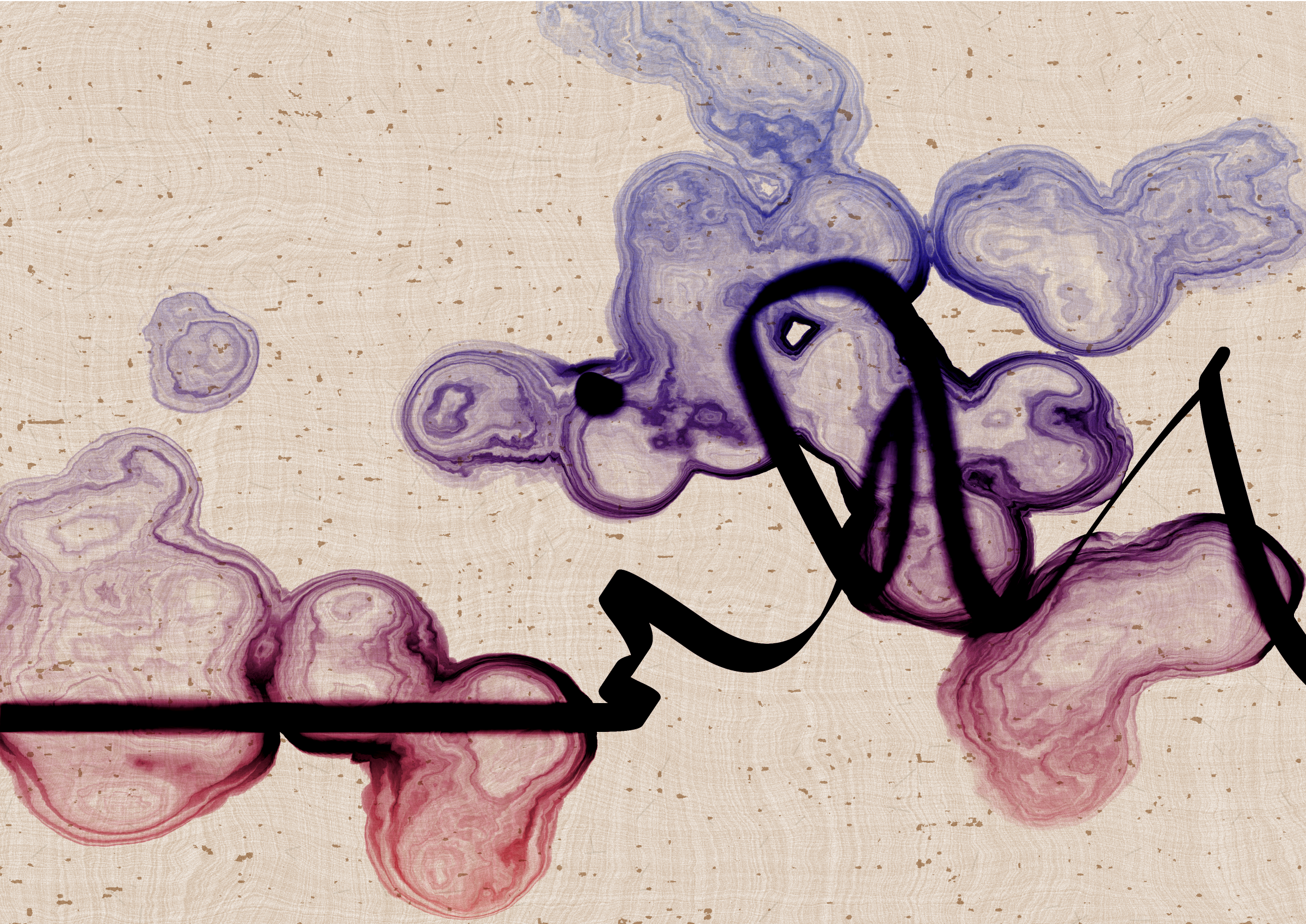 Digital liquid is spilled upon it and takes the ink in directions that are unexpected, uncontrolled, and tell a much more interesting story than the one the line intended.... and often more beautiful.