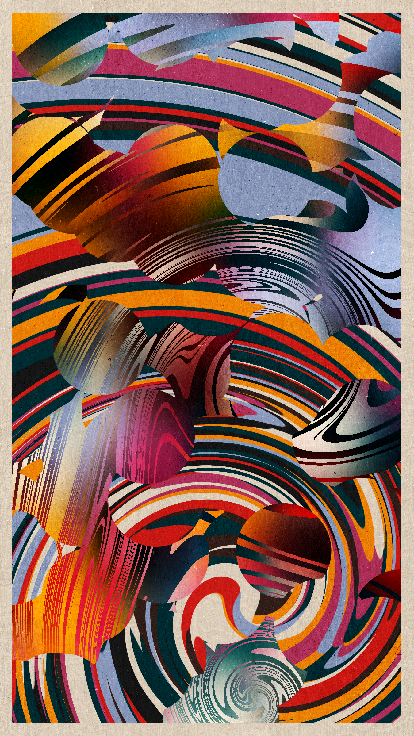 The collection attempts to capture the essence of Tokyo's multifaceted character and the unseen layers beneath the surface of the city's dynamic urban landscape. The bright abstract patterns, layered with a subtle fabric-like texture, allude to the interplay of modernity and ancient traditions that define the city. The intricate layers of the artwork hint at the depth of Tokyo's high-context culture, where communication relies heavily on implicit understanding, nonverbal cues, and shared cultural knowledge.