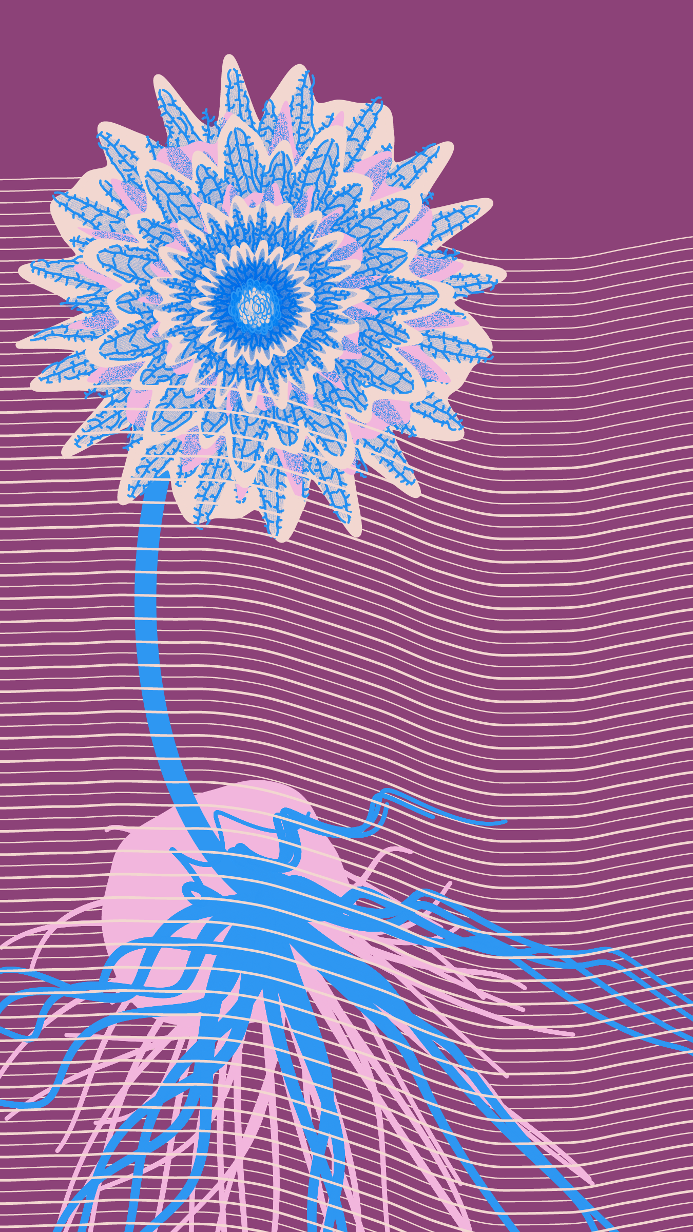 Underwater is a collection of 100 generative illustrations. The project portrays seven hypothetical species. Left to grow in the underground aquifer of Mexico City, these species are conceived as fictive descendants of ancient Mexican plants.
